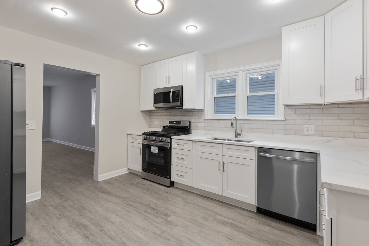 Welcome home to this charming and nicely updated 4-bed, 2-bath home in the heart of Blue Island! This home offers a sun-filled living room, a brand new kitchen with shaker cabinets, quartz counters, and stainless appliances, spacious bedrooms, and a full unfinished basement. Fresh paint and new flooring throughout. Do nothing but unpack and enjoy! This home is sold as-is. No survey. ***This property is not for rent***