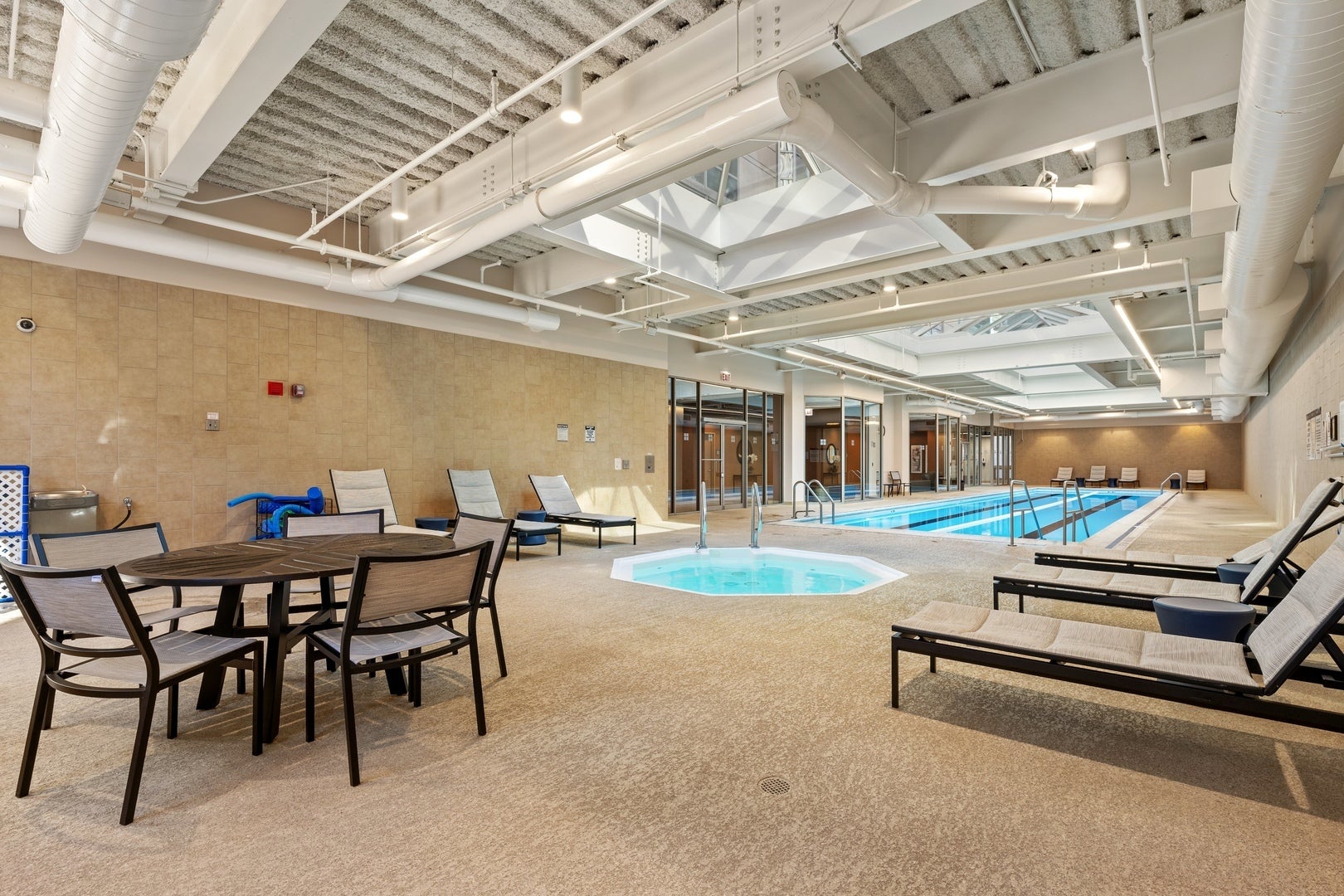 - AmenitiesDoor Person, Elevator(s), Exercise Room, Storage, On Site Manager/Engineer, Party Room, Sundeck, Indoor Pool, Pool, Receiving Room, Sauna, Steam Room, Business Center
