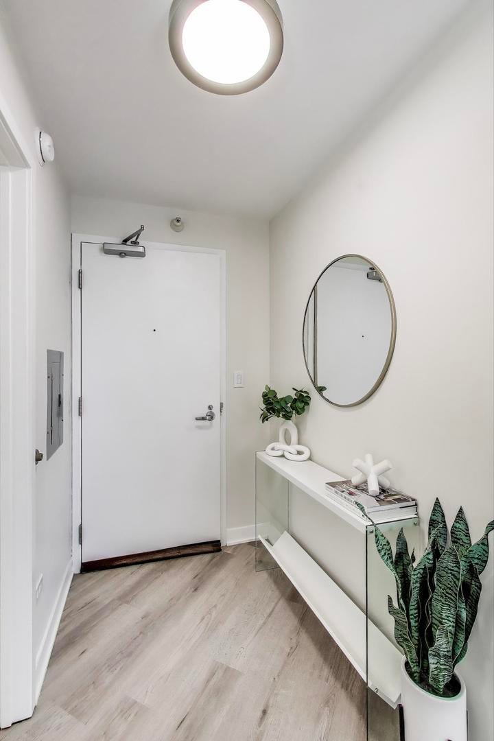 Modern & Stylish 1-Bedroom Condo - Updated and Move-In Ready! Welcome to this beautifully updated 1-bedroom, 1-bathroom condo offering the perfect blend of comfort, style, and convenience. Featuring an open-concept layout, this unit boasts a bright living space with large windows that flood the room with natural light. The modern kitchen is equipped with stainless steel appliances, quartz countertops, and custom cabinetry-ideal for both everyday living and entertaining. The spacious bedroom offers a peaceful retreat with ample closet space, while the renovated bathroom features sleek finishes, a new vanity, and contemporary tile work. Additional highlights include luxury vinyl plank flooring and in-unit laundry. Located in a well-maintained building with many amenities. Indoor lap pool and spa, fitness center, outdoor terrace with grills and herb garden, business center, party room, dog walking area. On-site management and maintenance. 24-hour door person. Near transportation, grocery stores, shopping and restaurants. Short walk to lake, riverwalk and Pritzker Pavilion. Connected to Chicago's pedway.
