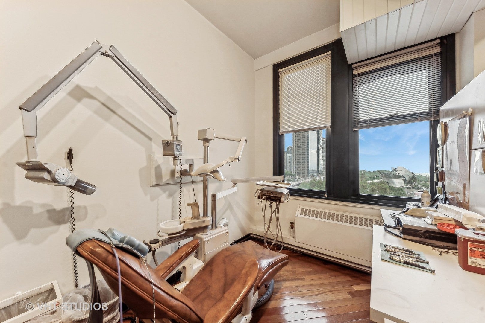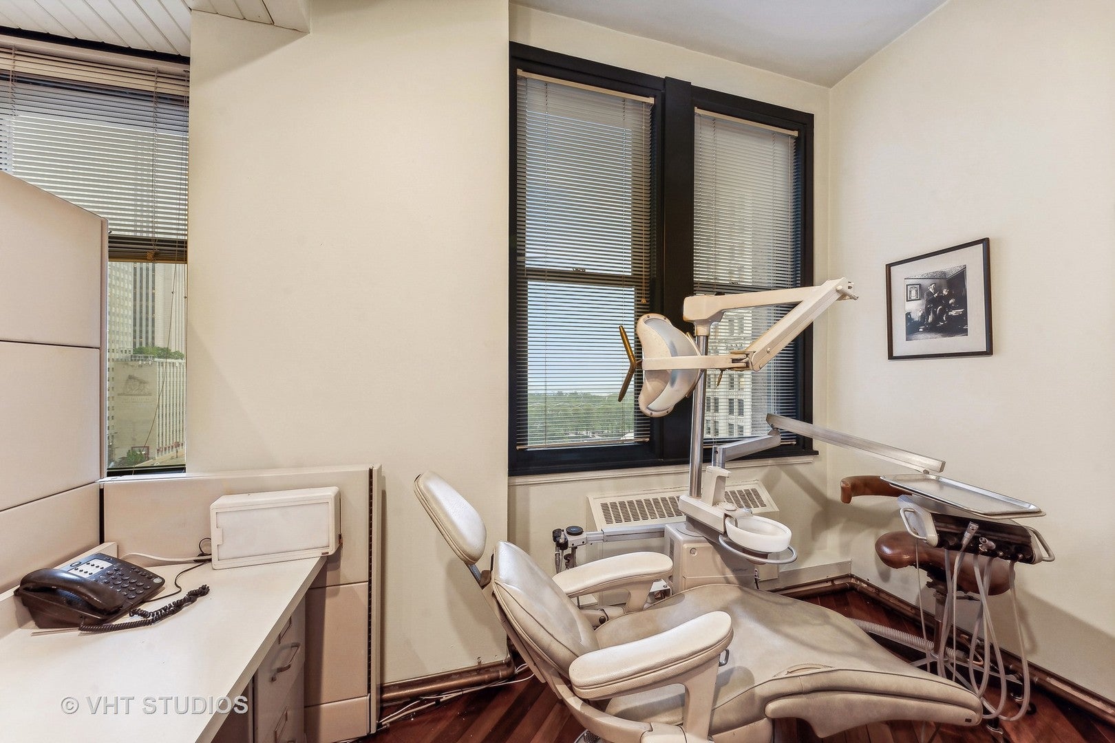 BEST LAKE AND CITY VIEWS... Calling all Dentists... Move right into this amazing suite in the Garland Building in downtown Chicago in Prime Locale! Completely furnished and ready to operate with all equipment included! Waiting room, private bathroom, private offices, work room and 3 dental chairs included in this amazing "rare to find" suite. This is absolutley a fantastic opportunity to expand or start your business in one of the best locations in downtown Chicago! The historic and iconic Garland Building is situated at the corner of Wabash Avenue and Washington Street in the heart of the Loop adjacent to the Wabash CTA elevated rail station, steps from Chicago's Magnificent Mile and Millennium Park. Management company and owner on site. Monthly assessments include janitorial services five days per week, security, shared conference room, maintenance and cleaning of washrooms. Low taxes and assessments! (Unit 1221 next door with Lake and City views... fully furnished Therapist office with 2 entrances, sink, waiting room, Therapist room and private office. $125,000... A great investment to purchase both... inquire within!)