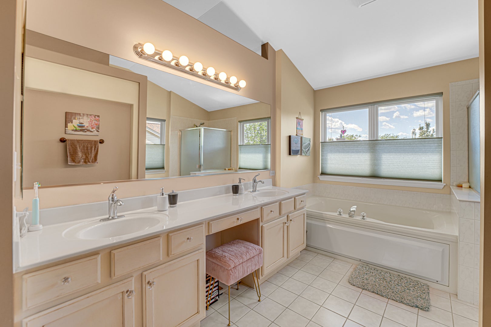 WOW! CHECK OUT THE BEST DEAL IN ALGONQUIN! This spacious and versatile two-story home, thoughtfully designed for everyday living and exceptional entertaining. Move in with confidence-major updates have already been completed, including the FURNACE, A/C, HOT WATER HEATER, WINDOWS, ROOF, VENTS, GUTTERS, CHIMNEY CAP, WATER SOFTENER, GARAGE DOOR SPRINGS, and even the POOL LINER w/an extra pump included. Additional upgrades include new patio slider and exterior laundry door, ensuring peace of mind. The home was also professionally weatherized 2024. Step inside to a dramatic two-story family room that opens seamlessly into a generous eat-in kitchen, featuring an abundance of white and gray cabinetry and expansive counter space. Formal living and dining rooms provide elegant spaces for hosting, while a main-level bedroom or office and full bath offer flexible options for guests, in-laws, or remote work. Upstairs, you'll find three large bedrooms and a bright, airy loft-ideal for a second living area, playroom, home office, or easily converted into a fourth bedroom. The primary suite includes a private sitting area, en-suite bath, and a walk-in closet to meet all your storage needs. The finished basement adds even more living space with a half bath and endless possibilities-whether you envision a rec room, gym, or home theater. The pantry in the basement offers a water line and is vented (could be a great 2nd kitchen) Step outside to your private backyard retreat, complete with a fully fenced yard, side garden and above-ground pool-perfect for summer fun and relaxation. (best priced home with a pool in Algonquin) With numerous updates, generous room sizes, and flexible spaces throughout, this home is ready to grow with you. HURRY! Come experience it in person!