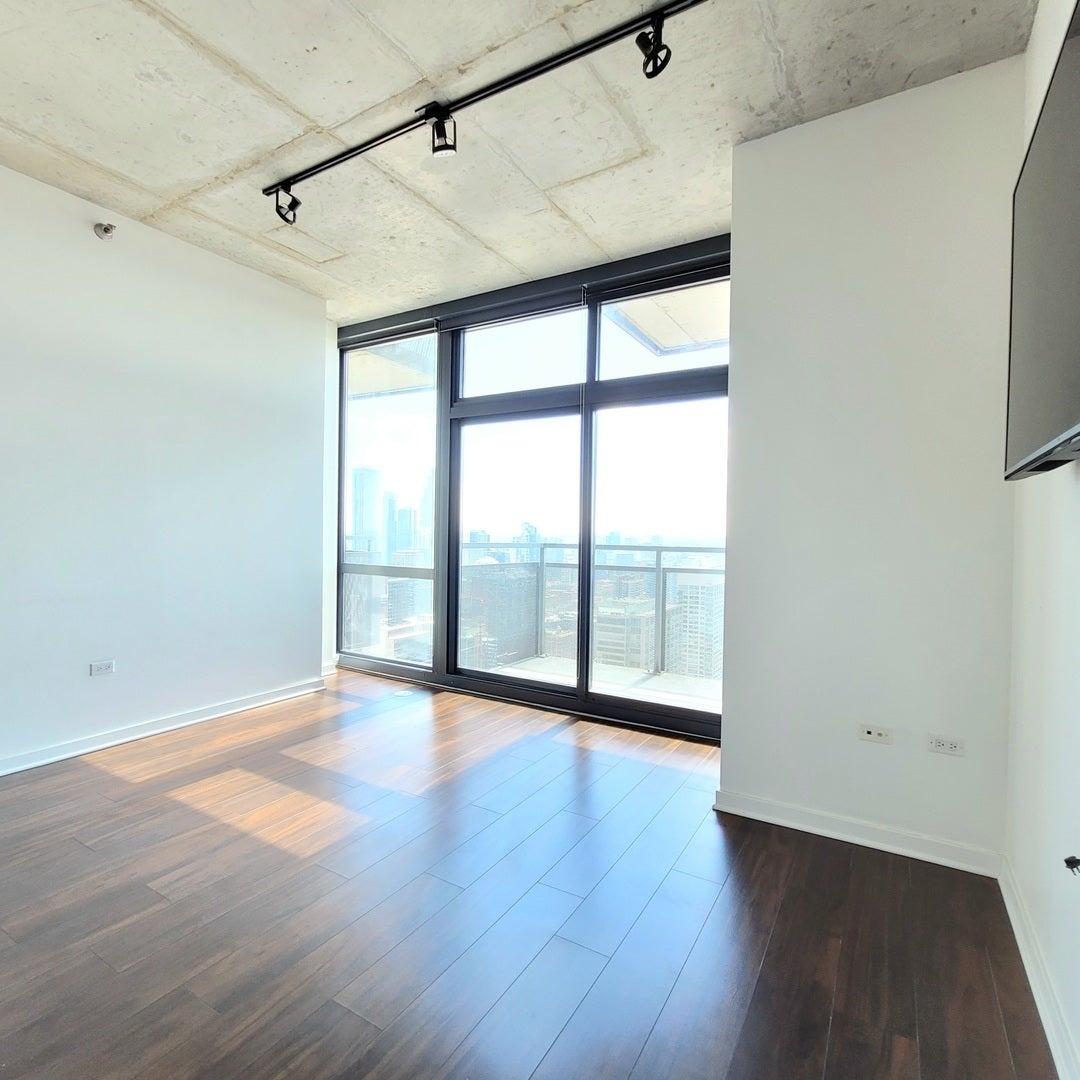 Enjoy breathtaking views from your private balcony perched on the 43th story of this architecturally award winning building in the heart of Chicago's Loop!! This spacious and bright unit offers 10ft ceilings, floor to ceiling windows, an open kitchen with granite counters and stainless steel appliances, a large bedroom, stylish bath, and in-unit washer & dryer. Newer wash, dryer and dishwasher. Fabulous building with many amenities including 24 hour doorman, on-site grocery store, bike room, amazon hub and dry cleaning locker! Incomparable location literally steps to the Riverfront, Lake Michigan, parks, and all of the world-class shopping, dining, entertainment that Downtown Chicago has to offer. This unit have one parking spot for additional $25000. Investor only. Current lease will end 4/30/2026 with $2950 rent including one parking spot. Current reserves are about $1.2 million.
