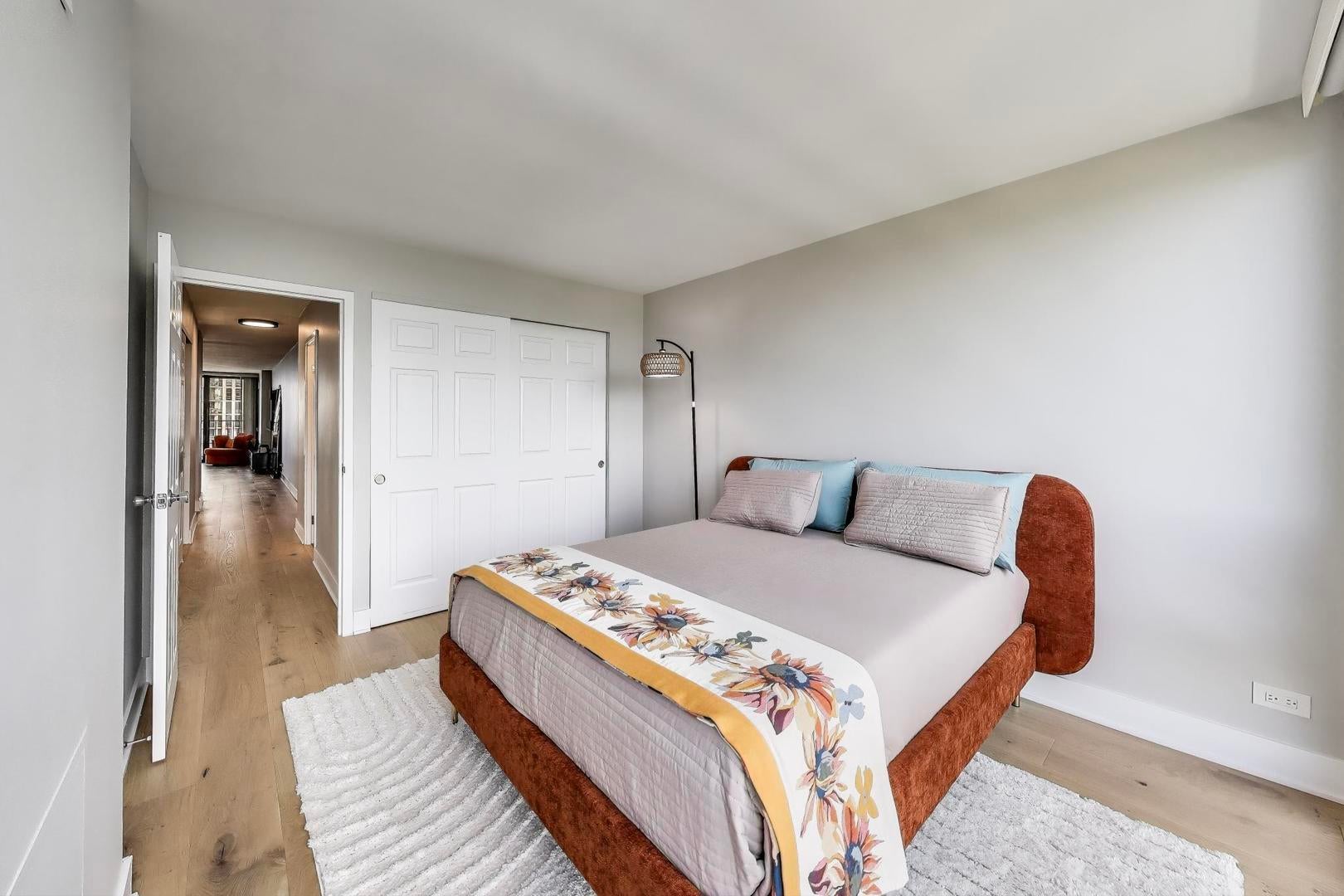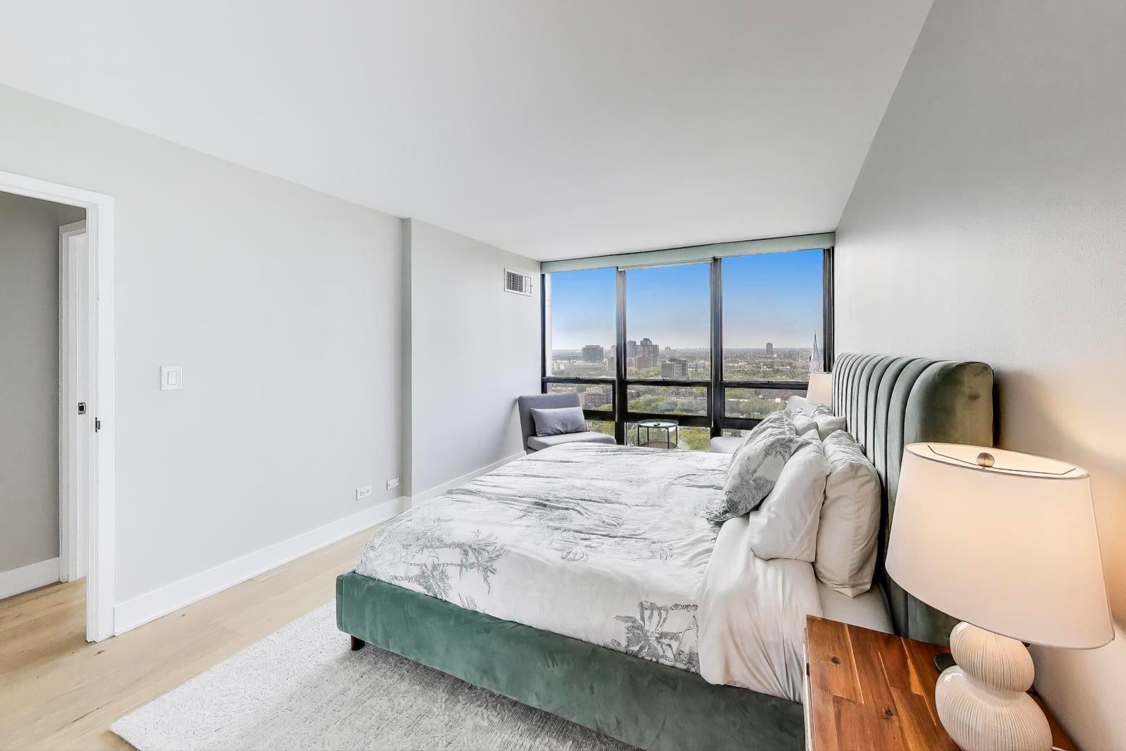 Recently updated and perfectly located in the heart of Old Town! This spacious 2 bed/2 bath on a high floor offers stunning east-facing views from your large private balcony, along with dramatic west-facing city and sunset views from both bedrooms. The bright and airy living room features floor-to-ceiling windows, brand-new hardwood floors (2024), and plenty of space for a dedicated dining area. The open-concept kitchen was recently renovated with new cabinetry, granite countertops with island seating, and stainless steel Kitchenaid appliances. The primary suite includes an en suite bath, while the generously sized second bedroom is complemented by a renovated bath with walk-in shower. Excellent closet space and new window treatments throughout. Full-amenity building offers outdoor pool and sundeck, fitness center, bike room, 24-hour door staff, hospitality room, dry cleaners, plus rental storage and parking options. Assessments cover heat, A/C, cable, and internet. Incredible location where you can walk to everything-Wells Street dining, nightlife, and shopping are right outside your door. Just steps to the lakefront, Lincoln Park Zoo, Second City, Green City Market, North Avenue Beach, and public transportation!