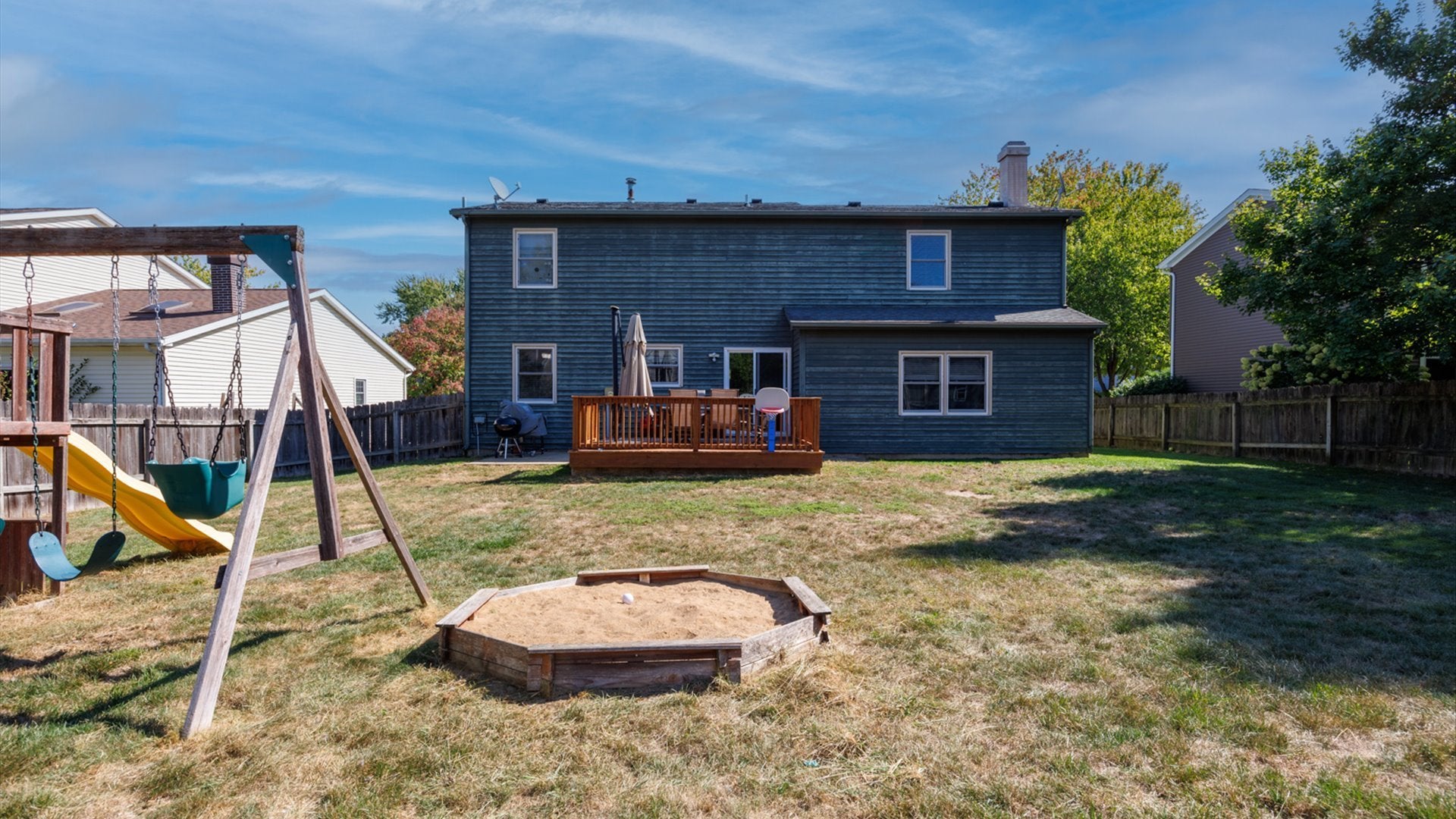 Beautifully maintained two-story home offering 4 bedrooms and 2.5 bathrooms in the highly desirable Blooming Grove Subdivision. The main floor features wood and tile flooring throughout, a spacious kitchen with stainless steel appliances, ample cabinet space, and a walkout sliding door to the deck. The dining area and living room provide a comfortable flow, highlighted by built-ins and a cozy fireplace. Enjoy a fenced backyard perfect for entertaining with a deck, firepit, storage shed, and kids playset. Recent updates include: new windows (2016), new front door (2018), painted siding (2016), furnace & AC (2015), radon system (2015), sump pump & carpet (2014), and updated landscaping (2017). With its spacious layout, thoughtful updates, and inviting outdoor space, this property is move-in ready and ideal for any lifestyle.