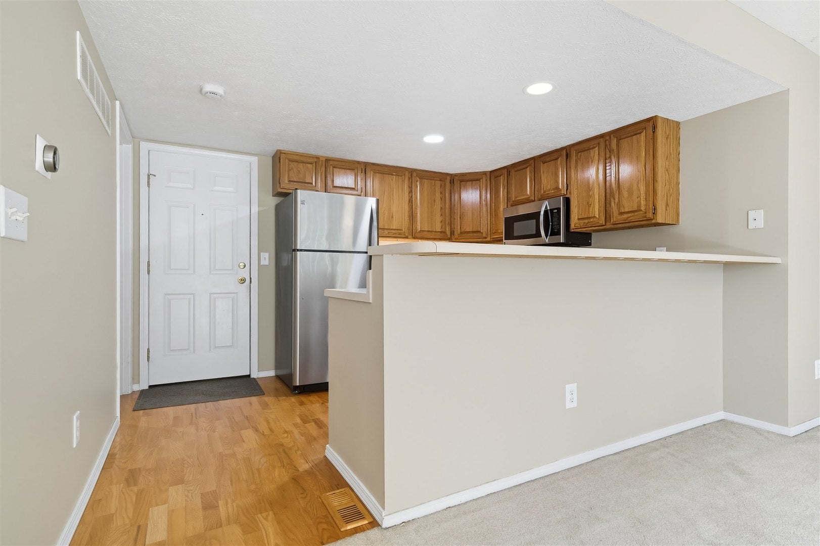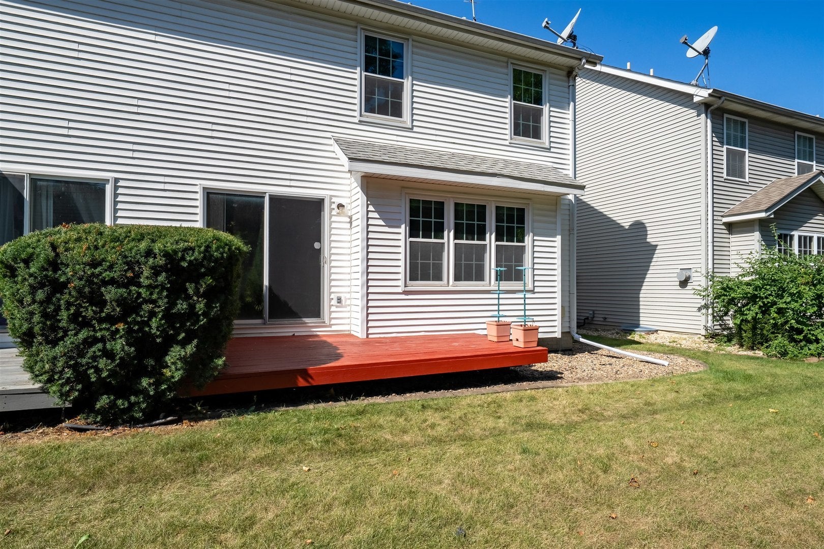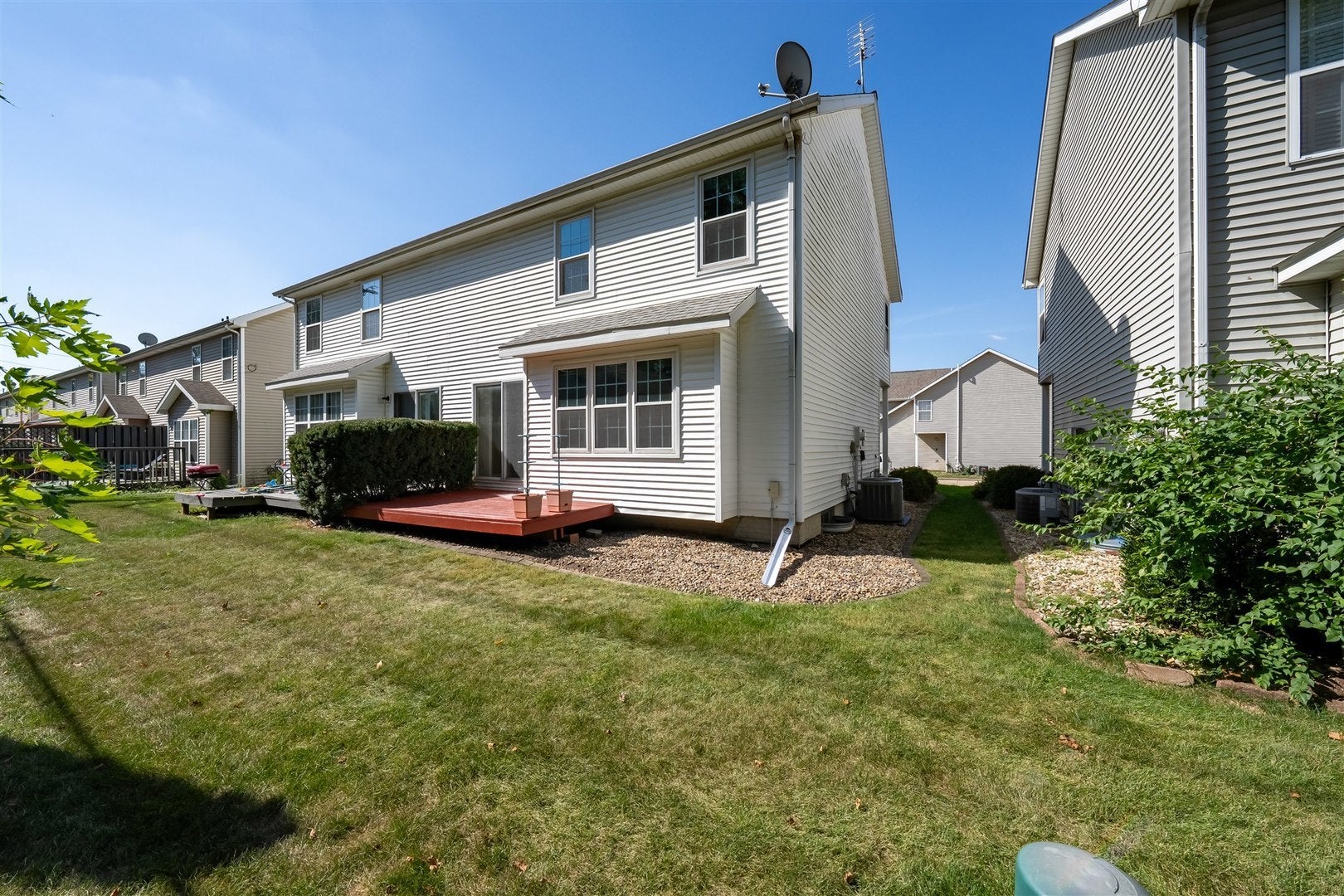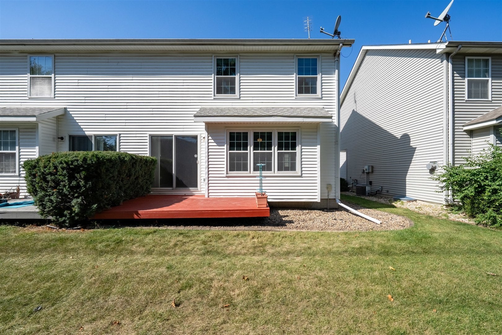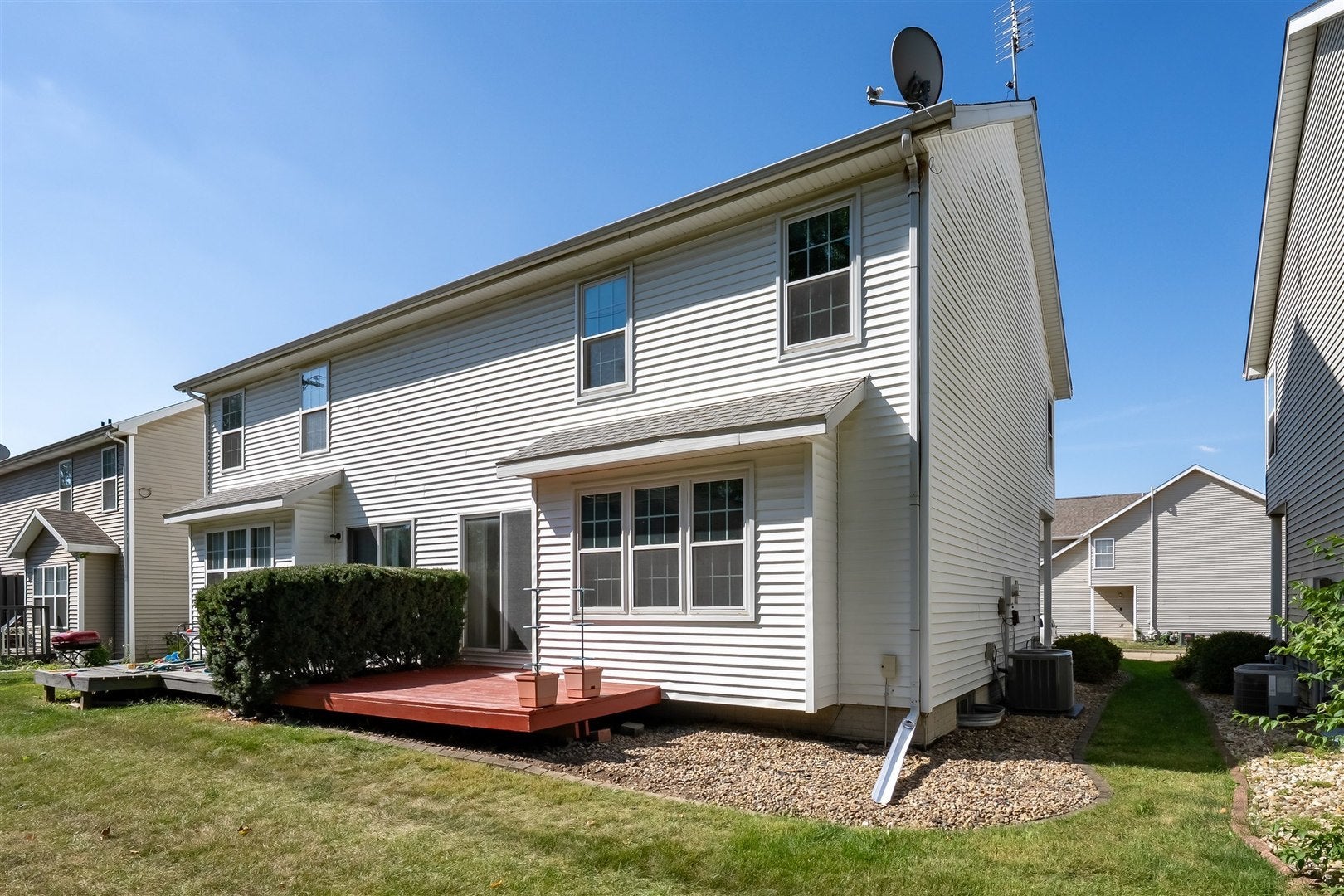 Updated two-bedroom two and half bath zero-lot in a prime location close to shopping, restaurants, golf, and pool. The main level offers an open-concept kitchen and family room filled with natural light, featuring stainless steel appliances and direct access to the deck. Upstairs you'll find two spacious suites with vaulted ceilings, generous closets, and full baths, along with a convenient laundry room. The finished lower level provides versatile space that can serve as a family room, playroom, or home office. Recent updates enhance peace of mind and move-in readiness, including fresh interior and porch paint (Sept. 2025), a newer furnace and A/C installed by William Masters (2023, approx. 2 years old), water heater (2017), and a roof with added attic insulation and kitchen appliances (2014). Windows and blinds were replaced in 2013, and new garage springs (Sept 2025). The HOA covers lawn care, trimming, and snow removal for both roads and driveways, making exterior upkeep effortless. All information deemed accurate, but not guaranteed