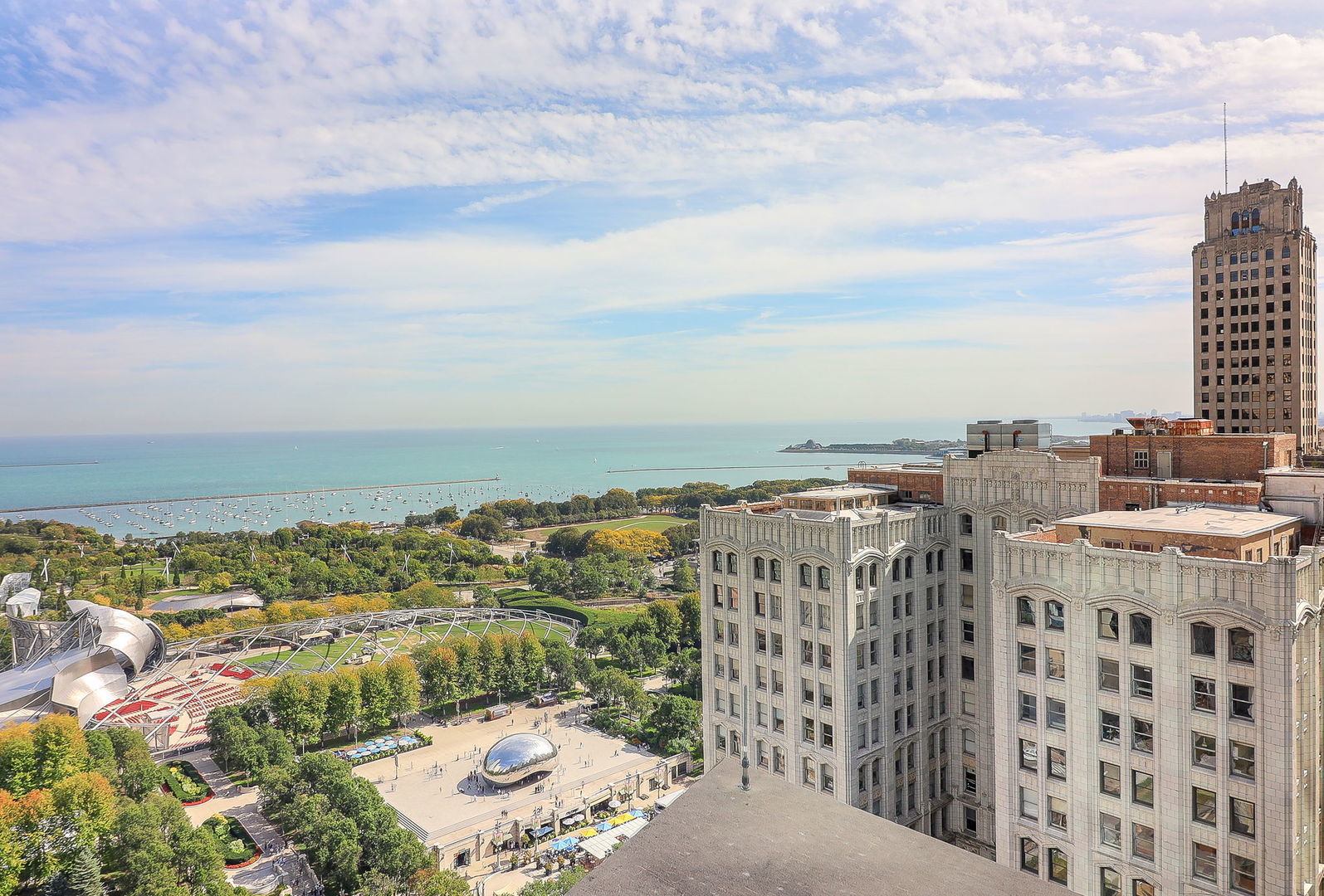 Welcome to this luxury large one bedroom (1,036SF), 1.1 bath condo at the Heritage of Millennium Park, situated just behind the Chicago Cultural Center, right across from the Bean, and the Millennium Park! Enjoy the beautiful west/city views from the floor-to-ceiling windows and the large balcony of this unit -- gleaming hardwood floor in kitchen and living & dining rooms, granite kitchen with 42" cabinets & stainless steel appliances, in unit laundry, freshly painted. Beautiful and luxury master suite with jacuzzi tub, custom walk-in closet and additional wall closet. This full amenity building features a fitness center, indoor pool and whirlpool, sundeck, party room, dog-walk, twenty-four hour door staff and package receiving room. In addition to the sundeck and patio on the pool level, it also has a roof-top terrace on the 28th floor overlooking the spectacular park, the Bean, lake, fireworks and city. Integrated into the city's pedway system, it has secure indoor access to Macy's, Daley Center, CTA and Metra Trains, and other pedway retail shops. The area restaurants, theaters, parks, shops are all within easy walking distance! The building is everything the city has to offer! 1 deeded parking space additional $35,000.