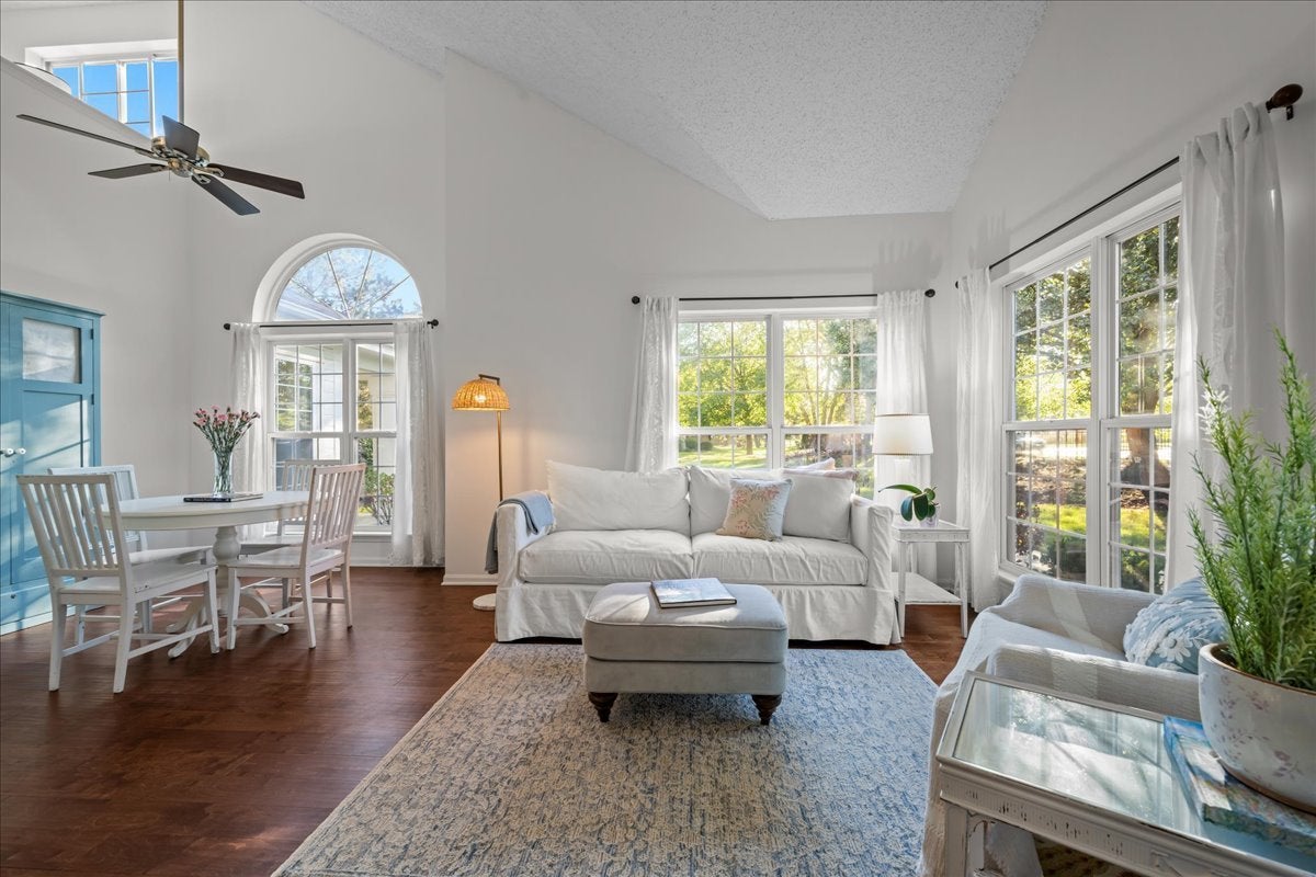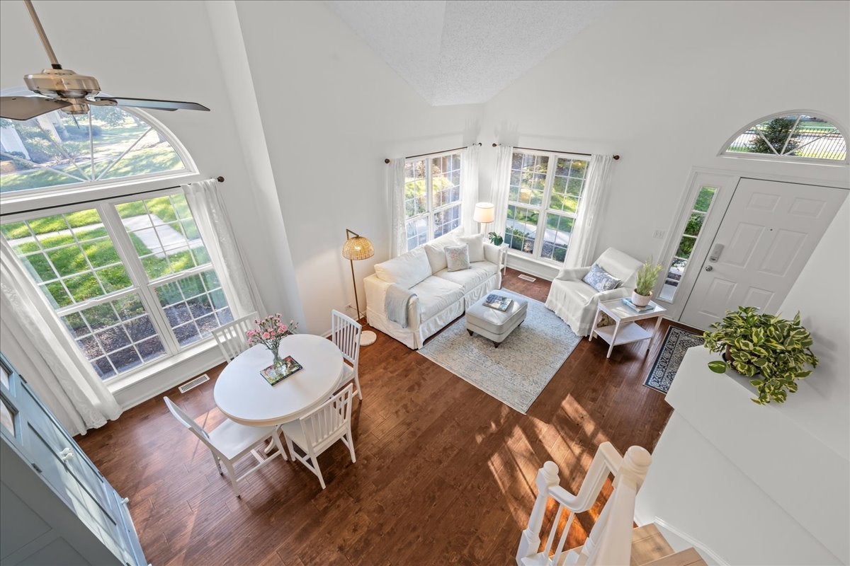 Welcome home to this stunning end unit townhome, perfectly situated to offer both style and comfort. Step inside to find freshly painted interiors and hardwood floors throughout that create a warm, inviting atmosphere. The home's elegant design is highlighted by tasteful, modern decor and an abundance of natural light flowing through every room. Sunny, bright kitchen includes ample space for cooking and a separate eating area with views of the beautiful yard. First floor laundry, large bedroom and a full bath provide first floor living. Continue to the second floor via the newly updated staircase with hardwood flooring, and freshly painted stringers and railing. Fall in love with the cozy loft area, perfect for office space or just relaxing. The spacious primary bedroom includes a remodeled primary bathroom (2025), a true showstopper-featuring high-end finishes which include marble floors and shower walls, quartz top vanity, and modern lighting creating a luxurious spa-like feel. Every detail has been thoughtfully chosen to provide both beauty and function. With its end-unit location, you'll enjoy extra privacy, additional windows, and peaceful outdoor views. This move-in-ready home offers a perfect blend of comfort, sophistication, and modern updates-ideal for today's lifestyle. Close to shopping, schools and the Fox River!